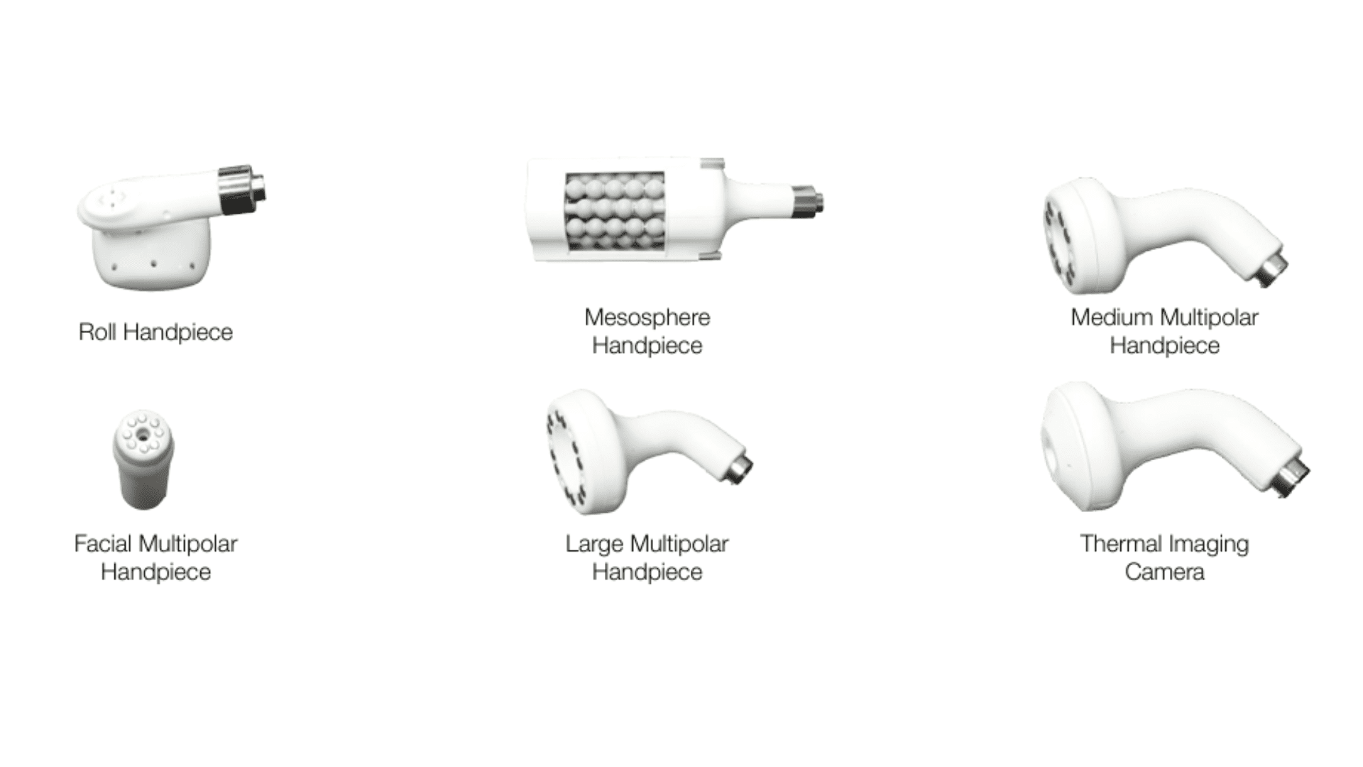 La T – Shape 2 ofrece estas 4 tecnologías en un sólo aparato, así como 6 piezas de mano listas para actuar sobre distintas zonas del cuerpo, con diferentes técnicas de moldeo corporal.